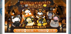 今回は10月1日に追加された【にゃんにゃん★トリックナイト】についてまとめてみました。販売は10月6日(月)23時59分までです。M sizeのぬいぐるみのシナモンくんがゲットできるようにパーティに参加したいと思います。