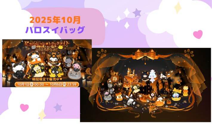 今回は、Hello Sweet Days(ハロスイ)で2025年10月1日にハロスイバッグで登場した、【にゃんにゃん★トリックナイト】のファッションアイテムやインテリア、お花からもらえるぬいぐるみを紹介したいと思います。