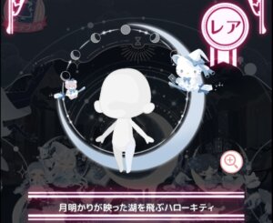 【月明かりが映った湖を飛ぶハローキティ】